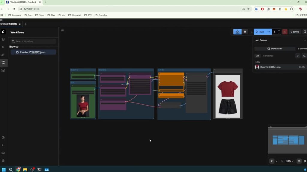 如果网页里面没有提取衣物工作流,可以把懒人包里面的文件(FireRed衣服提取.json),直接拖拽到网页,就有了工作流,ctrl+s保存