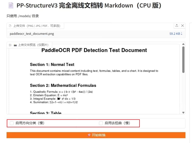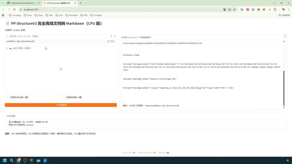 paddleocr PP-StructureV3 pdf转md 懒人整合包 cpu可用 交互界面调整